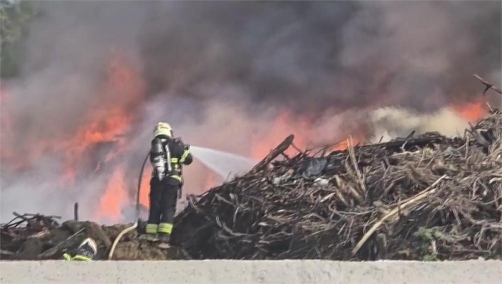 消防到場灌救。圖/台視新聞滿地都是垃圾雜物和先前颱風遺留下的漂流木,消防隊員全副武裝,灑水救火,而這回收場早就不是第一次起火,前年二月才因回收物夾雜鋰電池、打火機等易燃物造成火災,一共燒了17小時,惡臭撲鼻惹民怨。