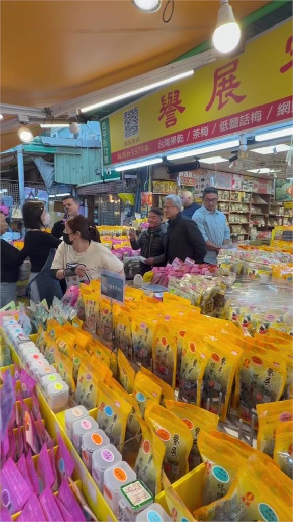 黃仁勳被目擊在購買蜜餞。圖/業者提供今日中午,黃仁勳也被人目擊到愛店花娘小館用餐,老闆娘指出黃仁勳跟她太太、女兒來用餐,吃了蒼蠅頭、蛋鬆白菜、清蒸魚、客家小炒、炒飯、雞湯、牛腩煲、豬腳等菜,但這次用餐吃得很趕,約吃了40分鐘左右就離開。