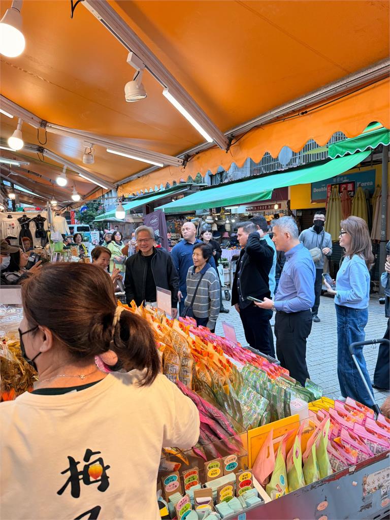 感恩節假期期間,輝達執行長黃仁勳再度現身台北街頭引發關注。不少民眾今(27)日分別在台北四平街一帶,直擊到黃仁勳的身影,他一邊忙著挑選蜜餞,並親切地與民眾互動,畫面曝光後,立刻在網路引發熱議。雖然黃仁勳這次的抵台行程並沒有對外公布,但外界普遍揣測可能與台積電創辦人張忠謀的健康狀況有關。