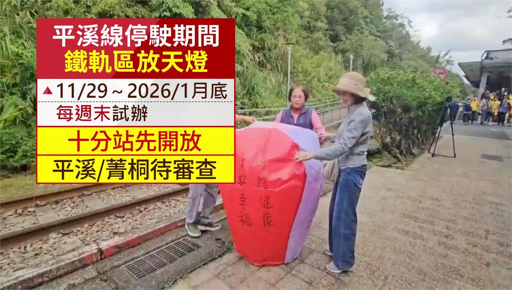 將由十分車站先開放,平溪站、菁桐站則待審查。圖/台視新聞據了解,十分車站最快將從29日起至明年1月底,每週六、日率先開放試辦;至於平溪站、菁桐站的開放範圍與時間,還有待平溪區公所先畫定放天燈範圍,再送台鐵審查後公告。