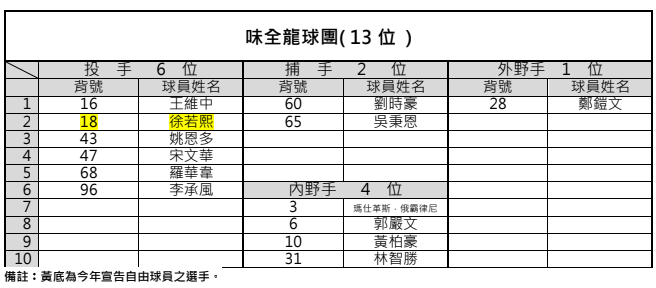 味全龍非契約保留名單。圖/中職提供責任編輯/陳盈真