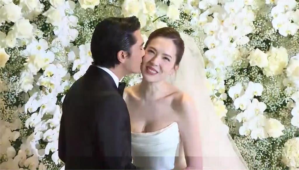 兩人婚禮開始前接受媒體訪問,還互相親吻臉頰。圖/台視新聞責任編輯/施佳宜