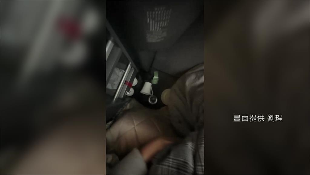 原本在桌上的飲料被震飛。圖/劉瑆提供提高警覺! 專家:該航線飛越低緯度地區對流旺盛