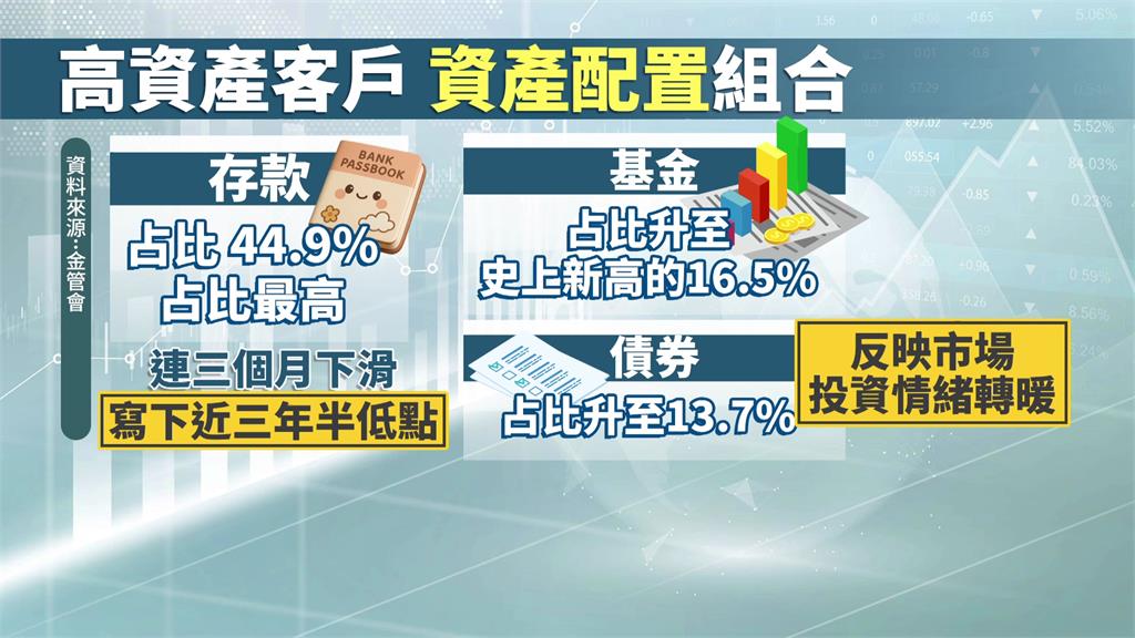 高資產客戶資產配置仍以存款占比最高。圖/台視新聞製圖台北/魏于恬、余苓瑀 責任編輯/網路中心