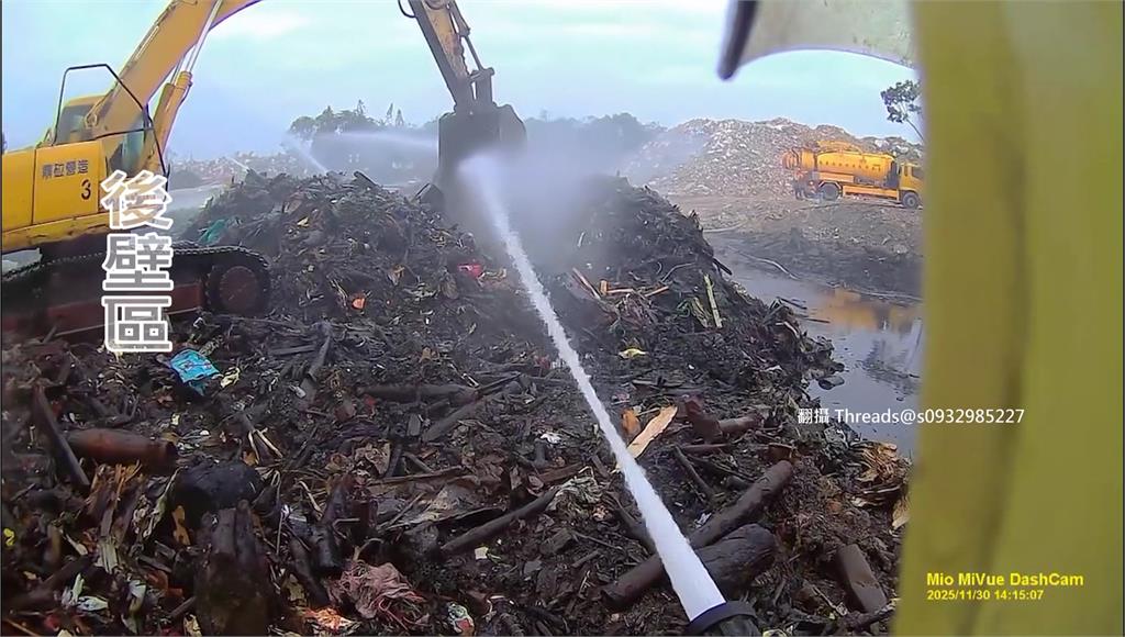 台南後壁「烏樹林堆置場」在丹娜絲風災後,堆置超過25萬噸廢棄物。沒想到上個月底發生火警,燃燒至今已超過10天,現場滿是泥濘,為了處理殘火消防隊員必須冒險經過。另外,城西掩埋場又傳出火警,6層樓高的垃圾山狂燒,這已經是今年第3度起火。環保局研判,恐怕是上次火警導致內部殘火復燃。