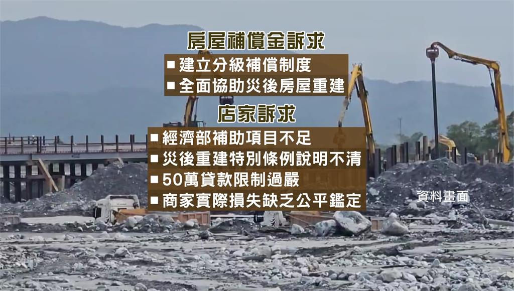光復災民質疑行政院至今未回應先前訴求。圖/台視新聞災民們盼望中繼屋要蓋好、堤防要堅固,以確保馬太鞍溪流域災民與部落的生命安全,還要求房屋補償金建立分級制度,協助災後房屋重建;另外受災的店家要求經濟部把補助項目、重建特別條例、貸款細項等通通講清楚。
