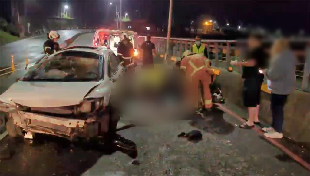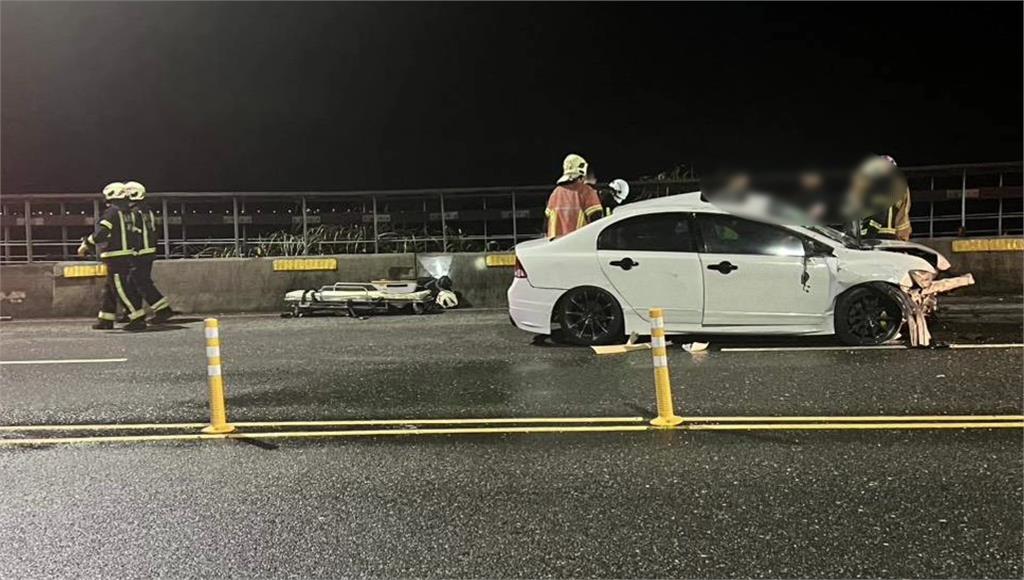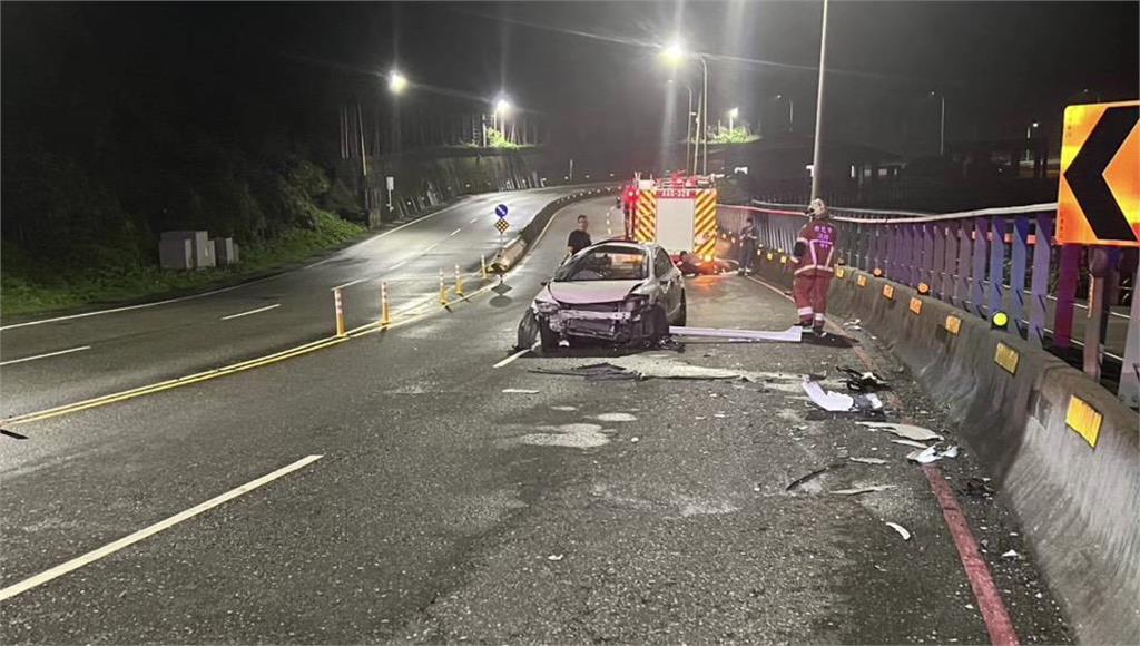新北市萬里區今(2)日凌晨3點多發生一起死亡車禍,一輛白色轎車不明原因在北部濱海公路自撞,撞擊力道猛烈,車輛在原地旋轉180度後才停下。警消到場時,22歲的男駕駛已無呼吸心跳,雖然緊急進行CPR按壓,但送醫搶救仍宣告不治;同車坐在副駕駛座的女友則幸運僅受輕傷。經檢測,駕駛沒有酒駕,詳細肇事原因仍待進一步釐清。白色轎車自撞車殼碎裂,駕駛送醫不治。圖/台視新聞責任編輯/蔡尚晉