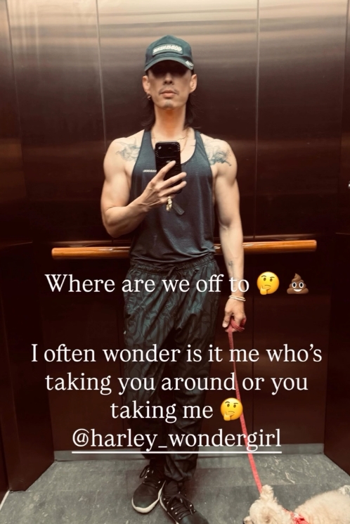 吳建豪近期2張自拍暴瘦模樣嚇壞粉絲。圖/翻攝自吳建豪IG吳建豪PO出一張在電梯內自拍,身穿黑色背心、戴著鴨舌帽遮住半張臉,雖然身材一樣健碩,但是臉卻是往內凹下、明顯消風不少,看起來相當憔悴,與先前在舞台上的模樣截然不同,甚至讓粉絲懷疑是否生病所致。