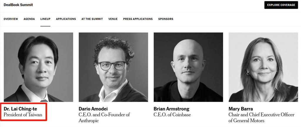 賴受邀參與紐時年度論壇 官網稱「台灣總統」