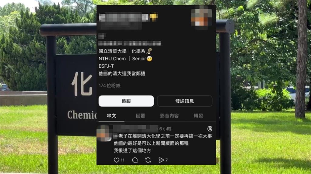 新竹清華大學一名學生,在社群平台上發表「清大逼我當鄭捷」的激進言論,引發校內師生恐慌。警方迅速介入調查,已將這名學生帶回偵辦。