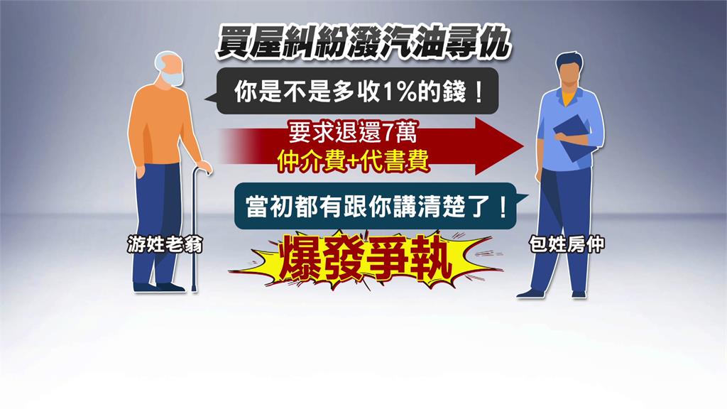 根據警方調查,游姓老翁4年前委託包姓房仲協助購屋,當時以約500萬元成交,並支付2%仲介費。不過游男事後懷疑對方多收費用,要求退還7萬元服務費及代書費,雙方因此多次發生爭執。4日晚間游男提著汽油桶上門理論,過程中揚言要「燒了房仲全家」,並與房仲爆發肢體衝突。