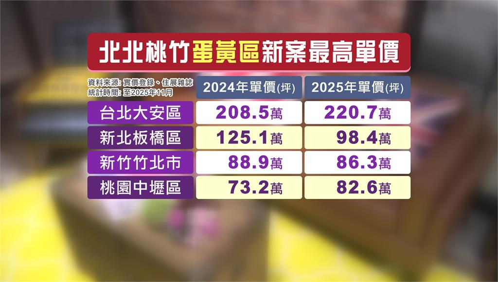 房市景氣持續冷清,也讓品牌建商推案腳步更加謹慎,今年哪怕是位在「黃金地段」的金門牌新案,也難以創高。根據統計,觀察台北市、新北市、新竹等區域蛋黃行政區,最高成交單價都出現下滑,不過展望明年,台北市不動產仲介公會信心喊話,認為「最壞的時刻已經過去」,2026年將是「價跌量出」的格局。