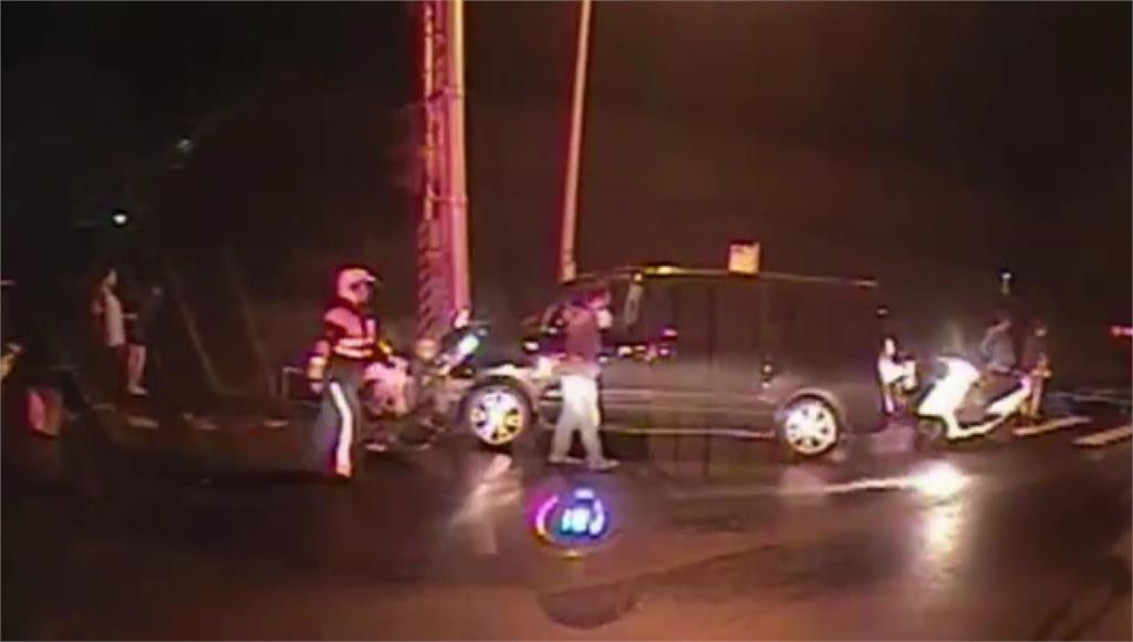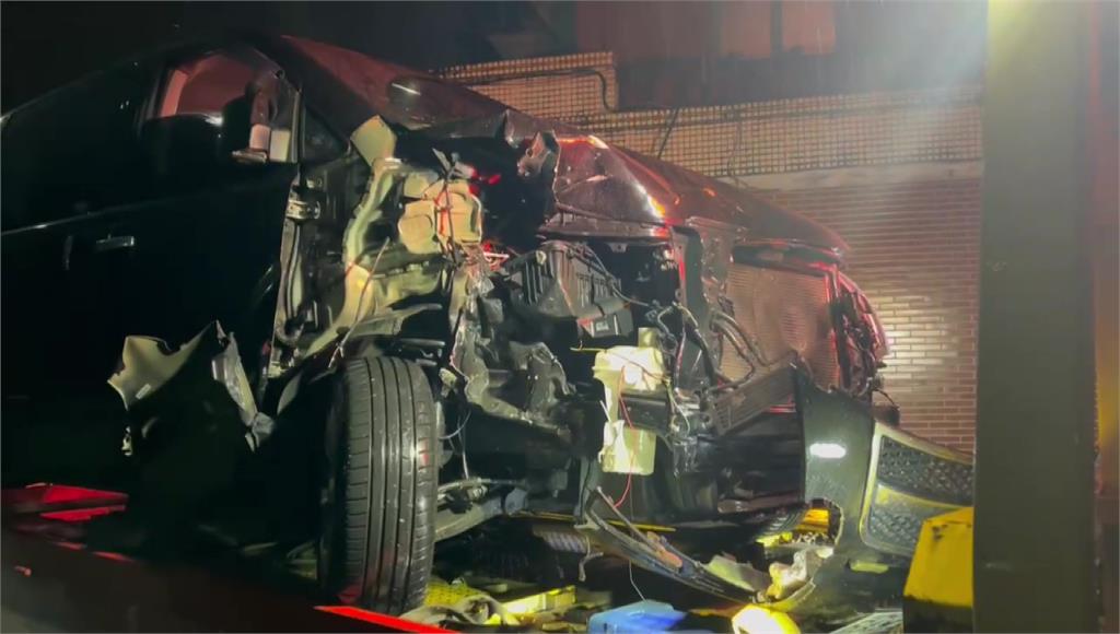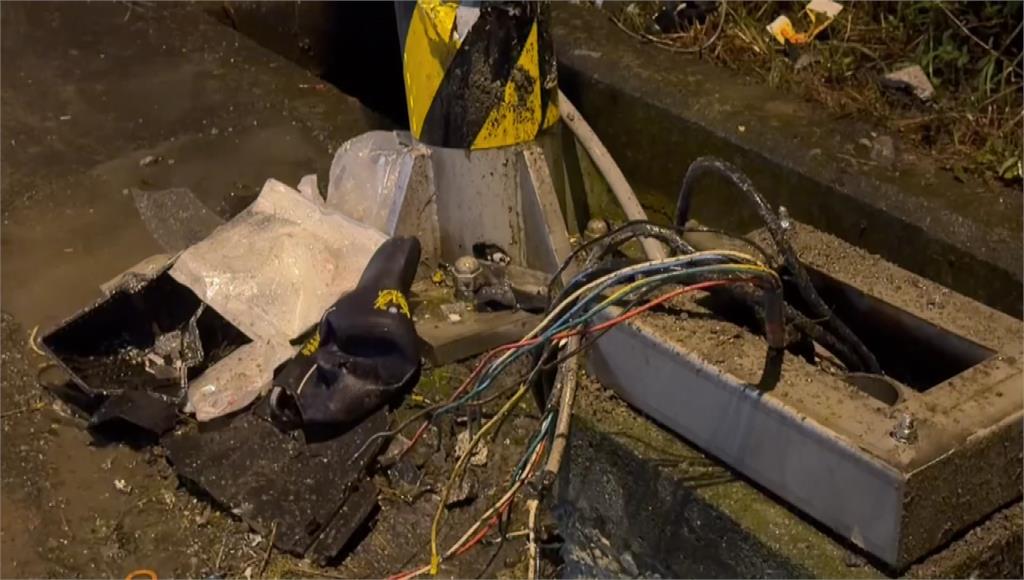 箱型車車頭遭撞毀,路邊控燈的鐵箱也被撞斷。圖/台視新聞林姓員警人被撞飛,直接掉進旁邊大排水溝,右腳開放性骨折,還一度傳出臟器外露,救護車趕到立刻將受傷員警送醫,附近居民衝出來協助救援,車禍現場怵目驚心,目擊民眾表示聽到「碰」一聲很大聲,出來看發現警察掉到水溝裡,狀況很不好。