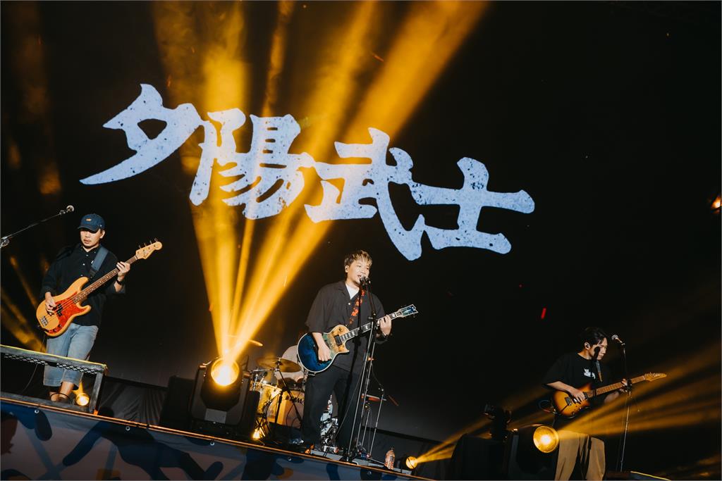夕陽武士舞台表演。圖/五条文化經線上與現場投票結果,鳳小岳的樂團「壓克力柿子」獲線上支線任務第一,拿下海外音樂祭門票;現場票選則由核果人與宇宙資料庫勝出,成為臺灣海外巡演代表。核果人團長阿海感動表示:「我們幾乎沒得過獎,謝謝《樂團祭》給我們這個舞台。」宇宙資料庫也向祭民致謝。