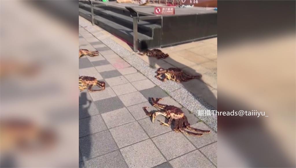 帝王蟹散落在人行道。圖/翻攝自threads@taiiiyu_