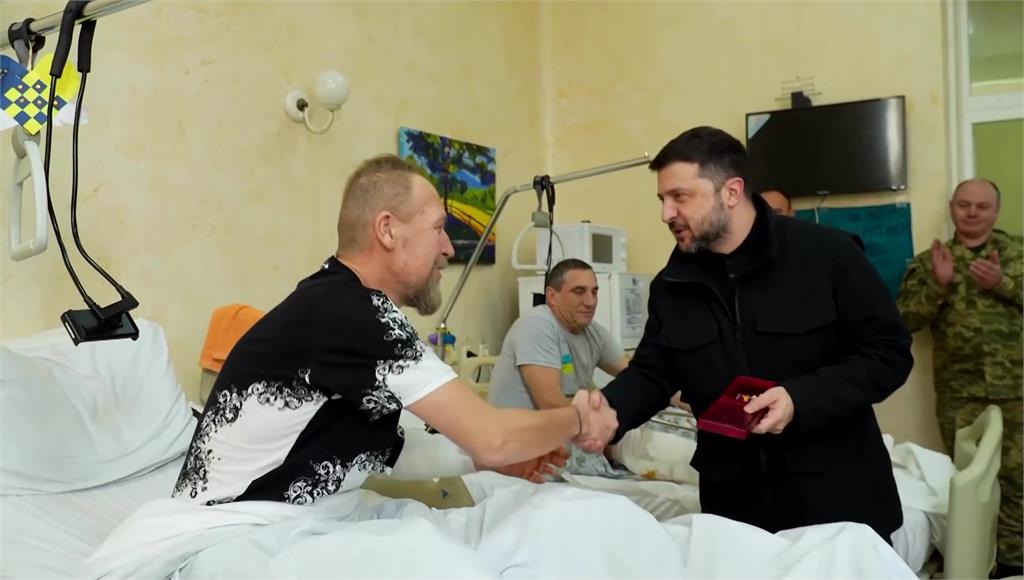 澤倫斯基將追授的勳章頒發給將士家屬。圖/路透社、美聯社、CNN此外,澤倫斯基還前往基輔醫院,探視傷兵與醫護人員,感謝他們捨身衛國的付出。