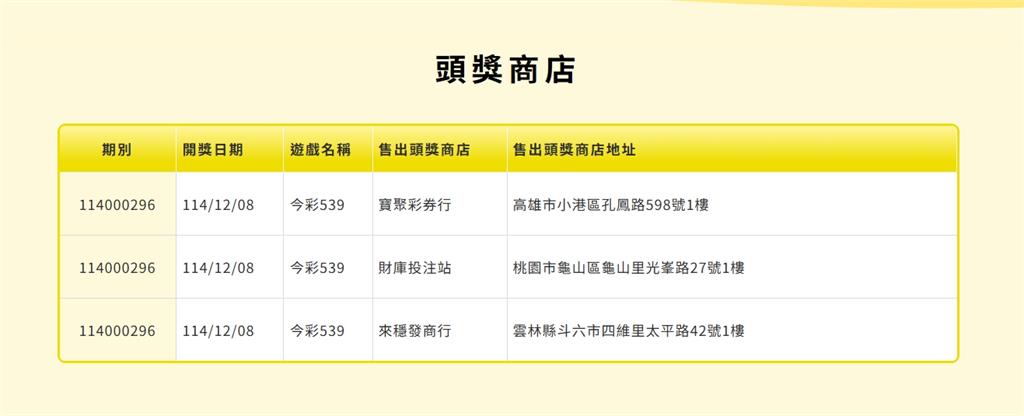開出頭獎彩券行。圖/翻攝自台彩官網