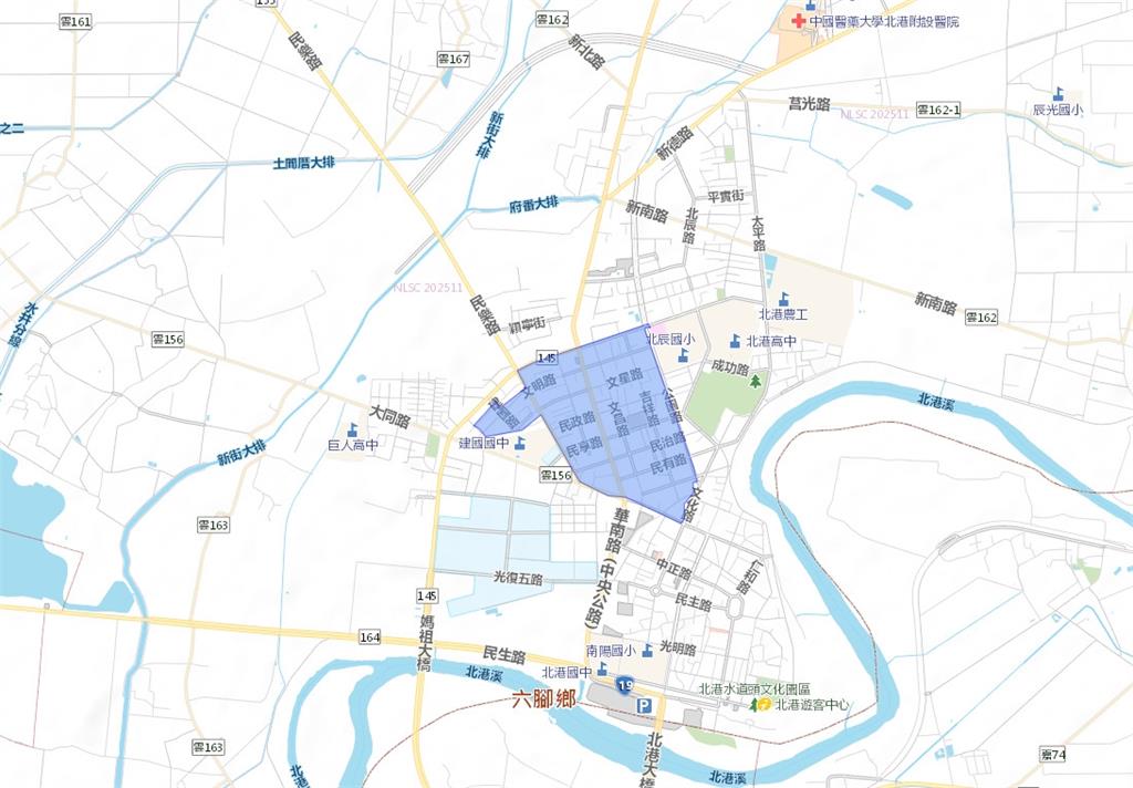 影響區域:北港鎮仁愛一街、仁愛三街、仁愛五街、仁愛路、公園路、勝利街、吉祥路、大同路、建國路、文仁路、文昌路、文明路、文星路、新民路、民享路、民政路、民族路、民有路、民樂路、民治路、華勝路、華興街。