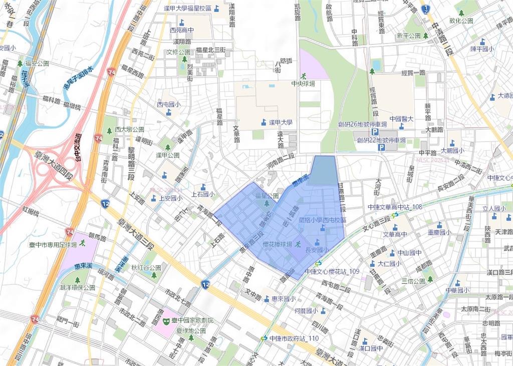 影響區域:西屯區上石里、何仁里、何安里、大河里、惠來里、逢甲里、逢福里。