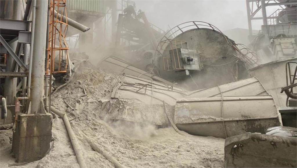 桃園觀音區有水泥預拌工廠驚爆桶槽倒塌意外。圖/台視新聞