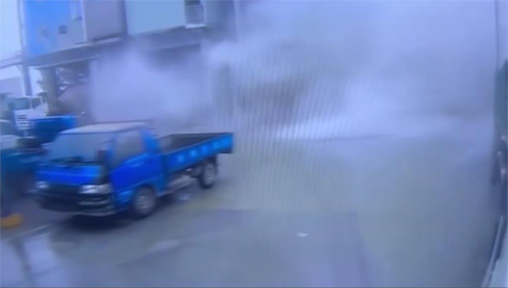 工人急忙倒車躲避塵土。圖/台視新聞