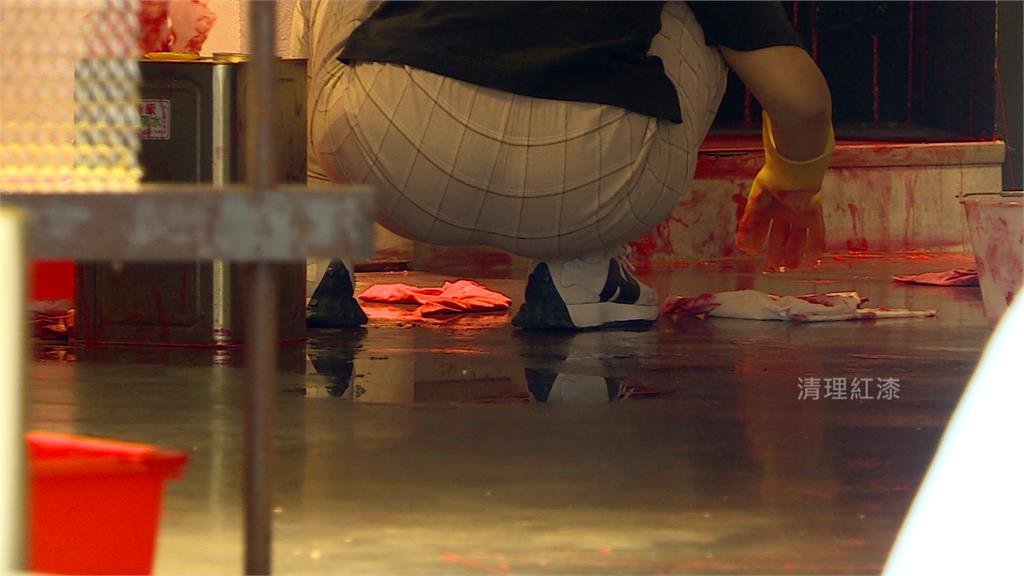 店家清理紅漆。圖/台視新聞