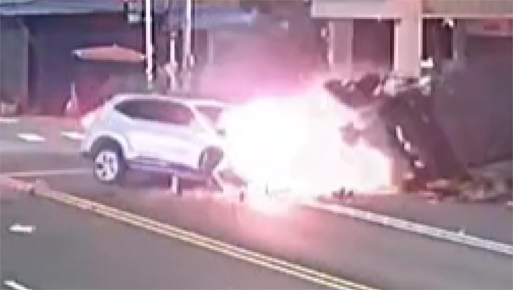 休旅車如子彈高速逆撞 3車撞成一團瞬間冒火煙