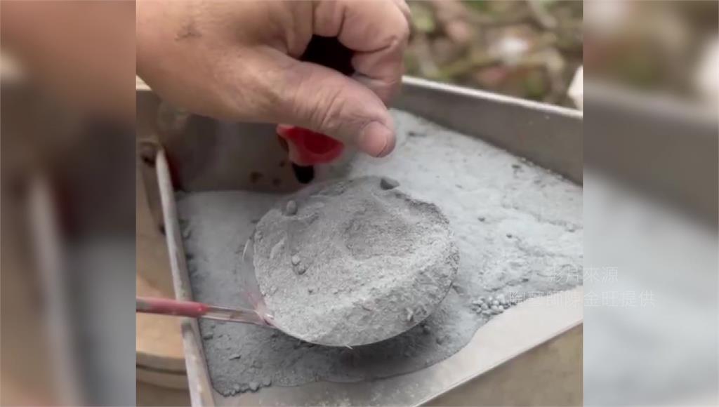 陶藝家將溢流的淤泥倒入機器過濾。圖/台視新聞陶藝家陳金旺說,「光復沙燒出來的釉色非常穩定,今天燒到這個顏色,明天可能燒不出來,這是最大的一個特點跟特色。」