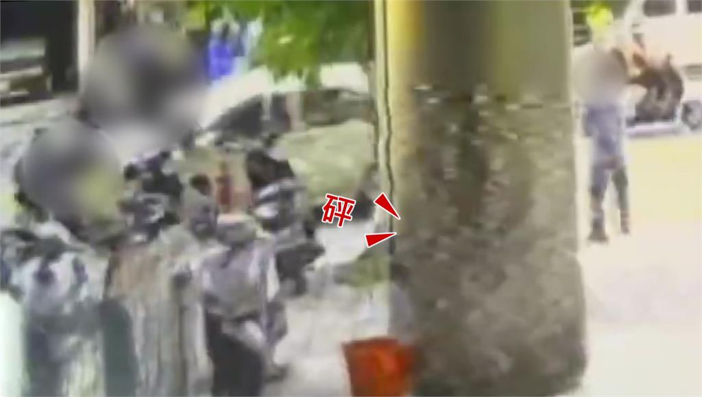轎車緩緩倒退,看似路邊停車,但下一秒車輛忽然暴衝,沿路逆向橫衝直撞,機車騎士跟後座乘客瞬間遭撞摔飛,再猛力撞擊路邊車輛,一旁民眾也嚇得急忙倒退。