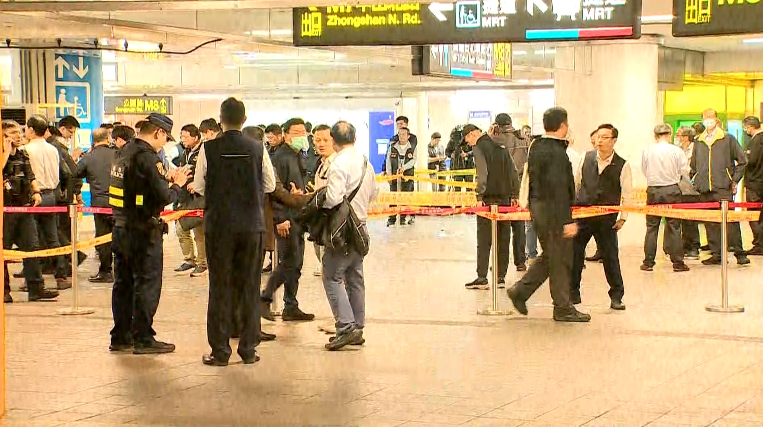 張嫌在台北車站丟擲煙霧彈。圖/台視新聞根據了解,張姓嫌犯逃到中山站後又闖入誠品南西百貨,最後畏罪墜樓呈現OHCA被送往國泰醫院,然而經搶救後,仍在晚間7點48分宣告死亡。
