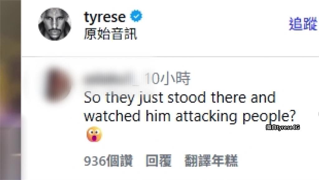 「玩命關頭」男星轉發攻擊案影片。圖/翻攝自IG@tyrese