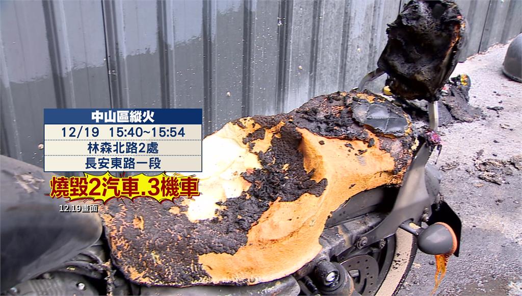 19號下午3點多,張文陸續跑到中山區三個地點,燒了5台汽機車。圖/台視新聞騎Ubike返租屋處 燒毀陽台雜物折返商旅