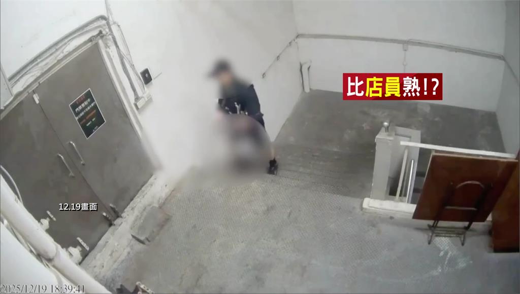 張文熟門熟路衝到誠品百貨頂樓,彎腰秒開鐵門。圖/台視新聞