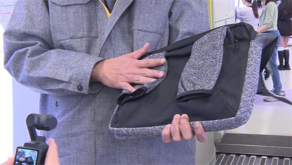 止戈盾甲包。圖/台視新聞車廂內配備可隨時變成警棍的「多層複合布料防刺傘」,不過,由於這款防刺傘具有反制功能,可變成棍棒使用,因此僅供受過訓練的站務人員使用,不對乘客開放。