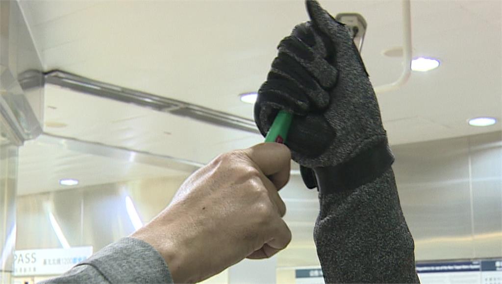 新北捷運為了防範可能發生的危險,也配置了三樣防身法寶,車廂內配有「穿戴式止戈手套」即使刀子怎麼割,也割不破,能提供旅客基本的防護與制止能力。