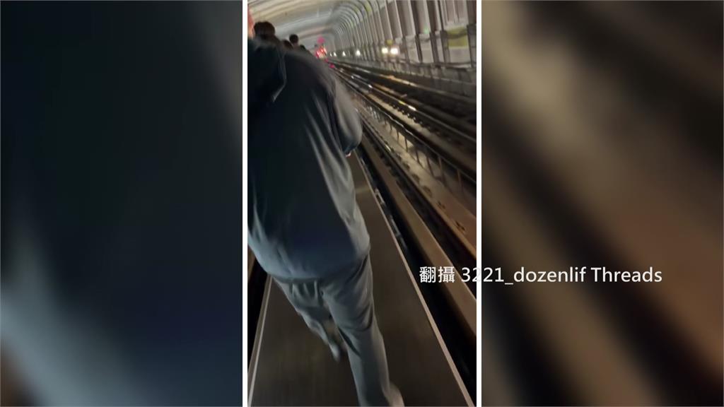 民眾摸黑沿著軌道旁的貓道行走。圖/翻攝自Threads@3221_dozenlif宜蘭深夜規模7.0強震 民眾受困電梯等救援