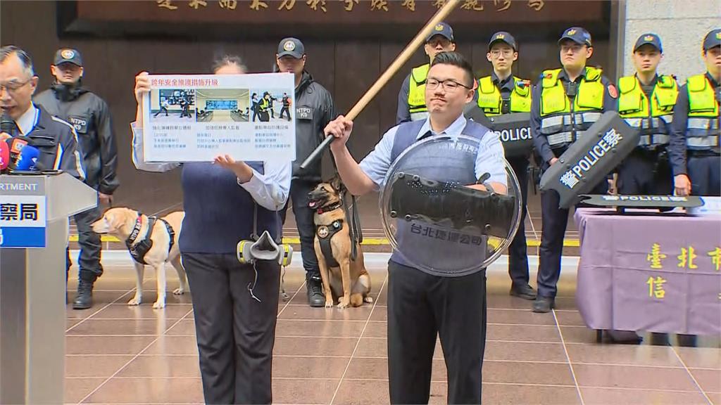 台北捷運公司則表示,跨年期間在維安方面主要有三項作法。第一,已持續強化演練,以提升對各類狀況的掌握與處理能力;第二,將增加車站巡檢與監看人員配置,加強各站巡視與系統監控,盼及早發現異常;第三,已於重點車站增設與配置防護與應變裝備,包括防禦盾牌、防禦棍、防禦鋼叉、突爆魔術袋以及防身噴霧等,以因應突發狀況。