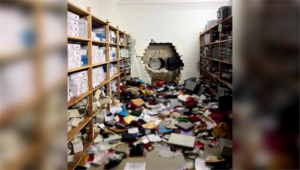 德國一家銀行遭「鑽牆大盜」洗劫,初估損失約合台幣11億!從現場曝光的畫面看到,金庫牆壁被鑽破一個大洞,櫃子上的物品全散落一地。