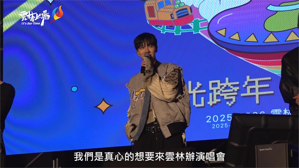 團員李起光說,真心想到雲林辦演唱會。圖/雲林縣政府提供而除了韓團, 各組藝人更是使出渾身解數,包含金曲歌后艾怡良、創作歌手周湯豪,一組組當紅藝人輪番演出,在半環場弧形煙火秀後,亞洲舞王羅志祥壓軸熱力登場,帶著台下歌迷又唱又跳,讓2026的一開始就活力十足,也將全場氣氛帶到最高點。
