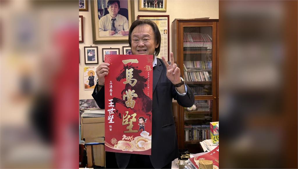 新的一年少不了各式各樣的春聯,政壇上已經有人開始玩創意,民進黨立委王世堅大玩諧音梗,題字是「一馬當堅」,背景是一匹精神健旺的馬,躍動姿態栩栩如生。值得注意的是,在春聯「堅」字的旁邊有一個Q版的王世堅圖案,充滿個人特色。