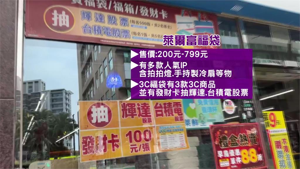 而萊爾富則是三款福袋,還主打3C商品吸引不同客群,更要抽輝達和台積電股票,讓不少民眾眼睛一亮。
