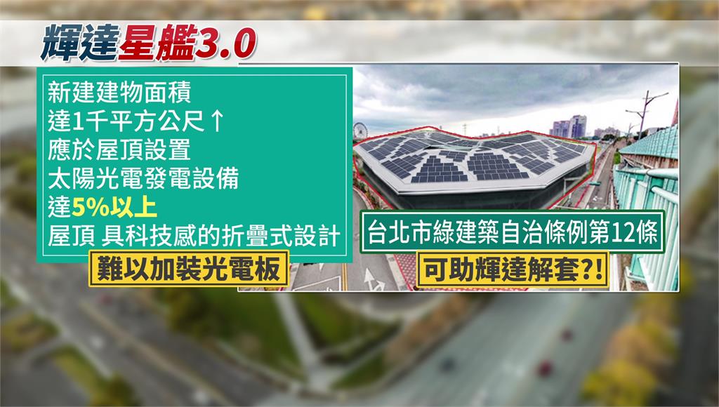 此外,輝達總部屋頂規劃為具科技感的折疊式設計,也恐難符合台灣現行法規。依規定,建築物面積若超過1000平方公尺,屋頂須設置光電板,與原始設計構想存在落差。
