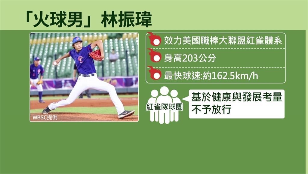 而被封為「台灣最速火球男」的林振瑋,曾投出最快約161公里的火球,目前效力於美國職棒紅雀體系,也因球團考量健康與長期發展,最終「不予放行」。