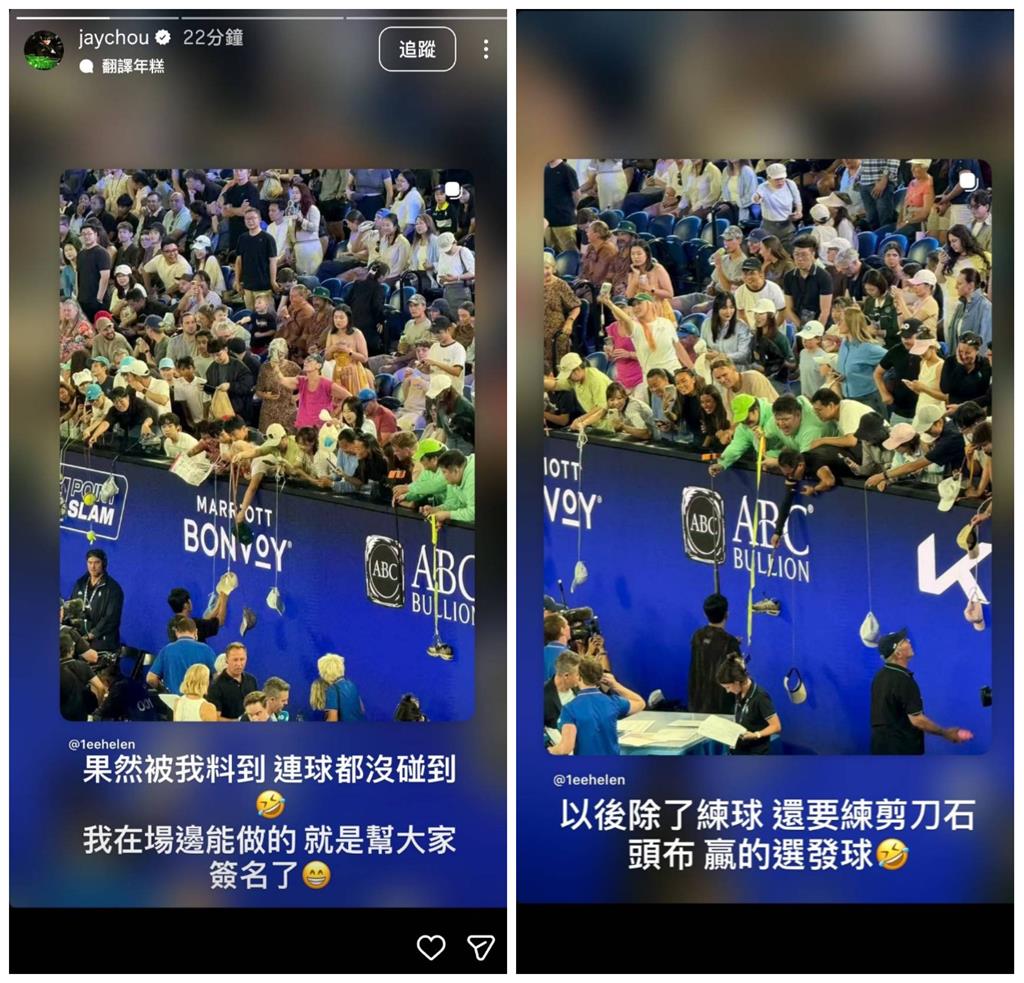 周杰倫還發誓,自己以後除了練球,「還要練剪刀石頭布,贏的選發球」。周董的澳網初體驗雖然不盡理想,最後他還是自我打氣說會繼續努力。