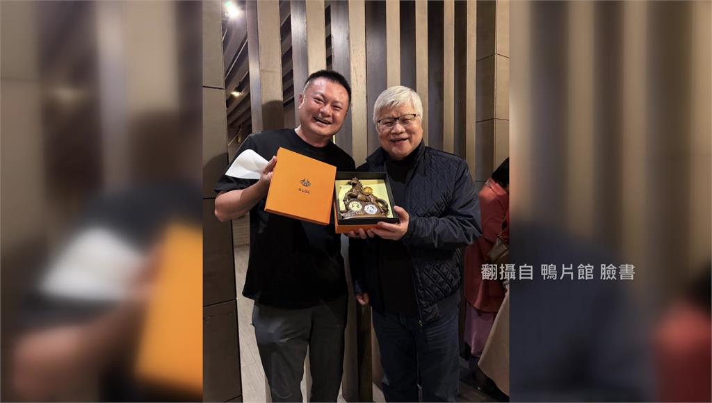 魏哲家與餐廳老闆合影。翻攝自鴨片館臉書
