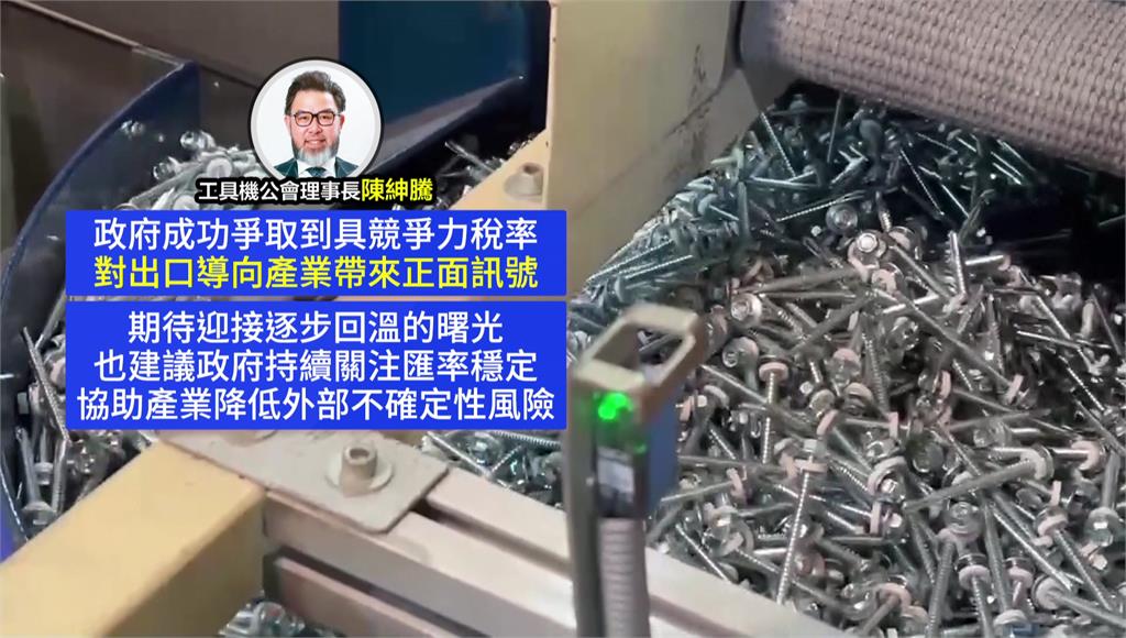 台美對等關稅拍板15%,讓機械製造、工具機等傳統產業鬆一口氣,工具機公會理事長陳紳騰表示,爭取到有競爭力的稅率對出口導向產業帶來正面訊號,也建議政府持續關注匯率,產業預估無薪假情況有望好轉。