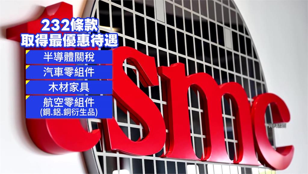 台美關稅具競爭力,對台灣傳產有利。圖/台視新聞而232條款部分,台灣拿到最優惠待遇,包括半導體關稅豁免、汽車零組件、木材家具都是15%,航空零組件則是零關稅;但我國半導體企業將投資2500億美元,加上政府擔保企業融資2500億美元,學者也擔憂,未來投資台灣力道會減弱。