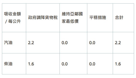 油價吸收金額表。圖/中油提供本週依油價公式及政府調降貨物稅(汽、柴油每公升各共2元及1.5元)調整國內油價,並持續以亞鄰國家最低價及平穩措施運作,協助穩定國內油價,114年台灣中油累計共吸收約64.44億元。