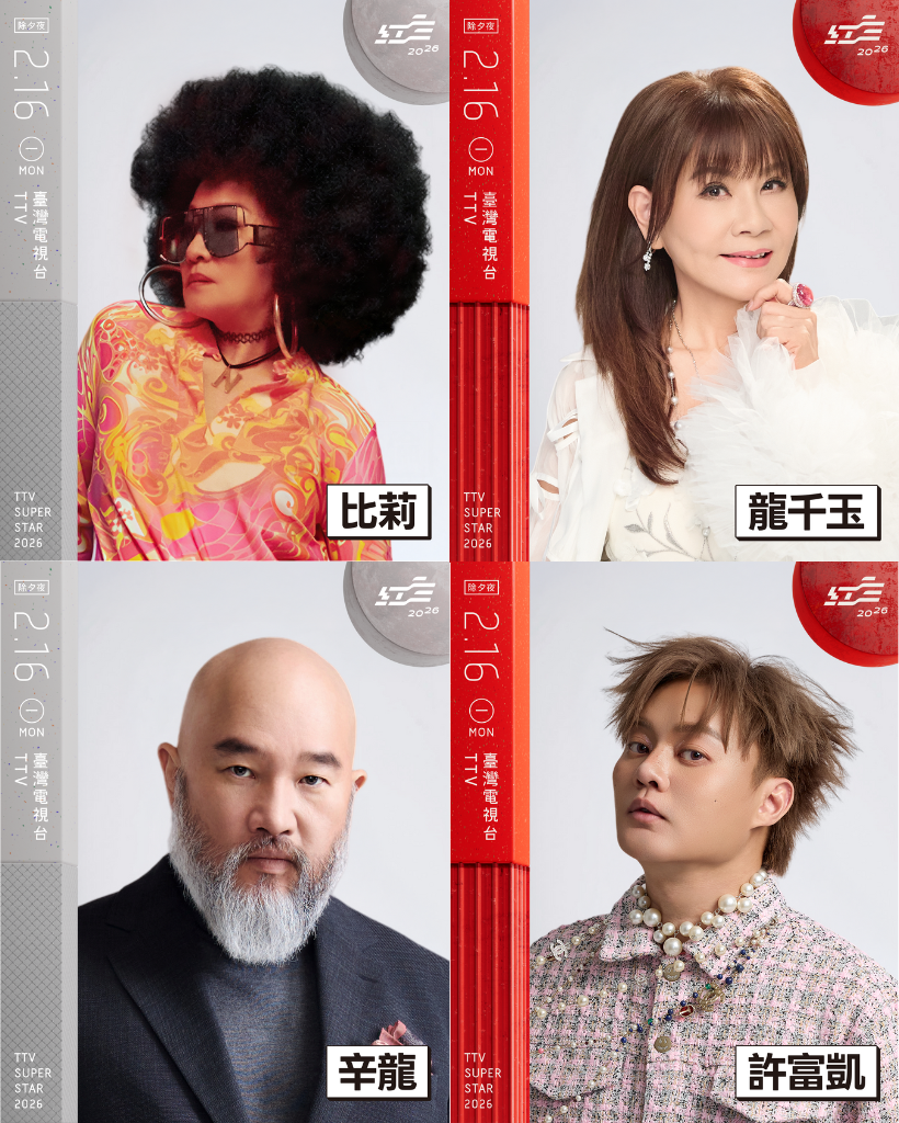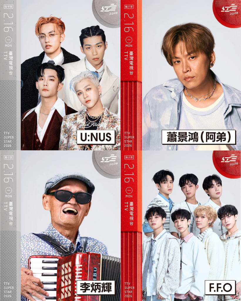 《2026紅白》夢幻卡司集結,除夕夜準時鎖定紅白。圖/台視精采絕倫的台視《2026超級巨星紅白藝能大賞》將於115年1月31日在台北小巨蛋隆重登場,並於農曆除夕(115年2月16日)在臺灣電視台(台視主頻)播出。活動詳情請上官方粉絲頁(https://www.facebook.com/superstarttv/)。