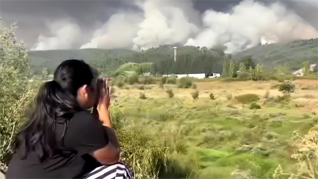 災民看著林火肆虐好無奈。圖/美聯社 、路透社紐夫萊省利爾奎港的一間醫院被濃煙吞噬,醫護緊急疏散病患,消防員也協助搶救器材跟行動不便的長者。消防單位坦言,火勢仍完全處於失控狀態,超過38度的高溫跟強勁的風勢,大大增加了打火的難度。